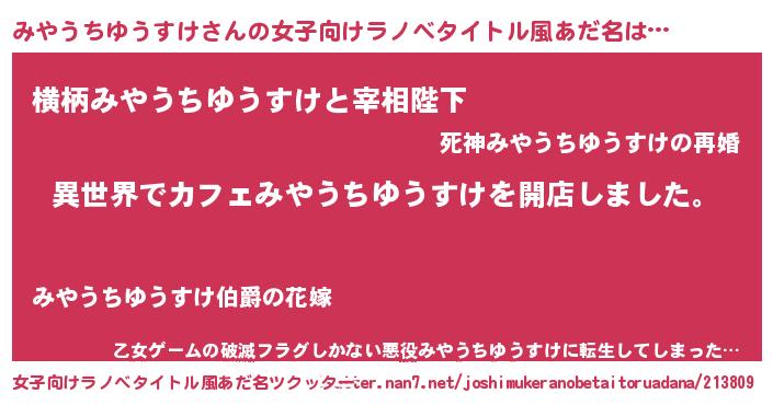 | 意味不明あだ名 | 『永久保存みやうちゆうすけ』 |