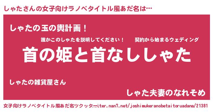 | 意味不明あだ名 | 『なめこ科しゃた属』『ペロリンしゃた』 |