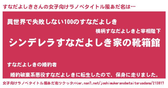 | 意味不明あだ名 | 『永久保存すなだよしき』 |