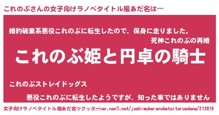 | 男性向けラノベタイトル風あだ名 | 『これのぶの憂鬱』『コレノブスレイヤー』 |