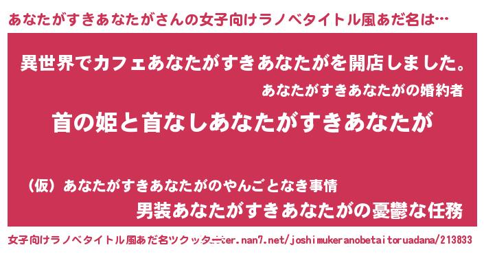 | 男性向けラノベタイトル風あだ名 | 『はたらくあなたがすきあなたがさま!』 |