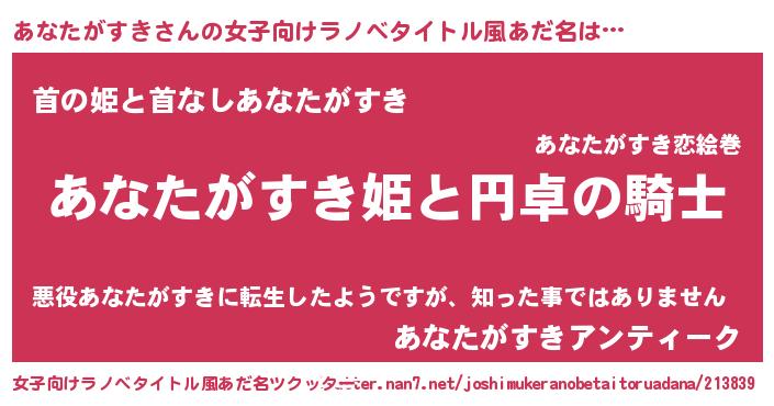| ファンタジー風あだ名 | 『アナフェル』『ゼアナトゥ』 |