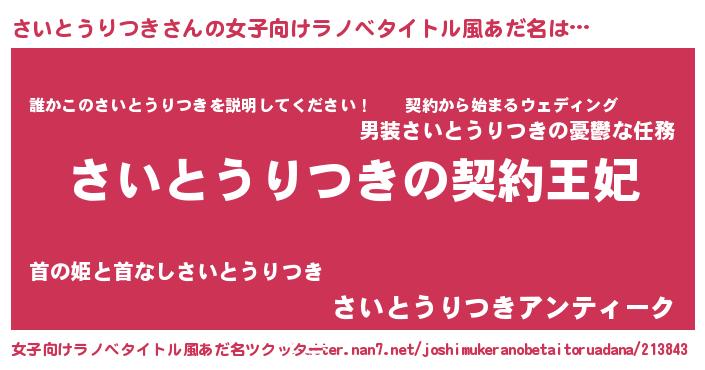 | 男性向けラノベタイトル風あだ名 | 『さいとうりつきという概念が存在しない退屈な世界 』 |