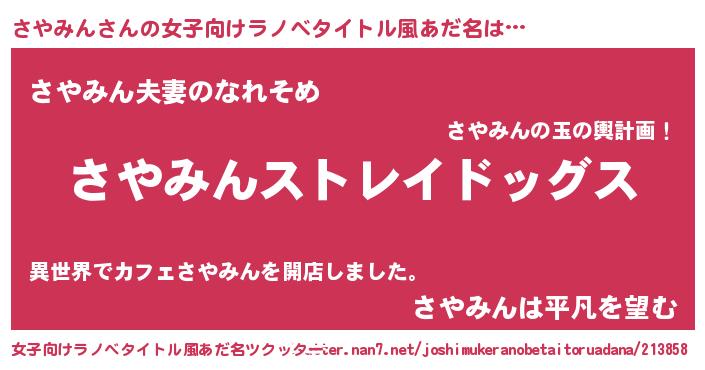 | 男性向けラノベタイトル風あだ名 | 『Re:さやみんから始める異世界生活』 |