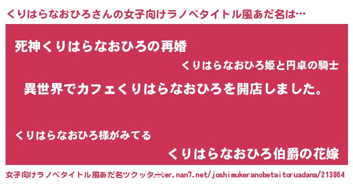 | 胡散臭い通販商品みたいなあだ名 | 『前代未聞の健康食品…その名も「くりはらなおひろ」』 |