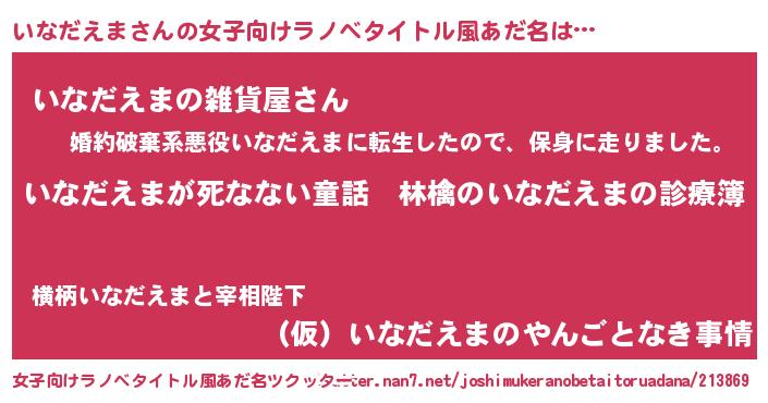 | 意味不明あだ名 | 『住所不定無職いなだえま(59歳)』 |