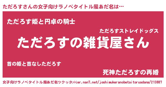 | 男性向けラノベタイトル風あだ名 | 『やはりただろすの青春ラブコメはまちがっている 』 |