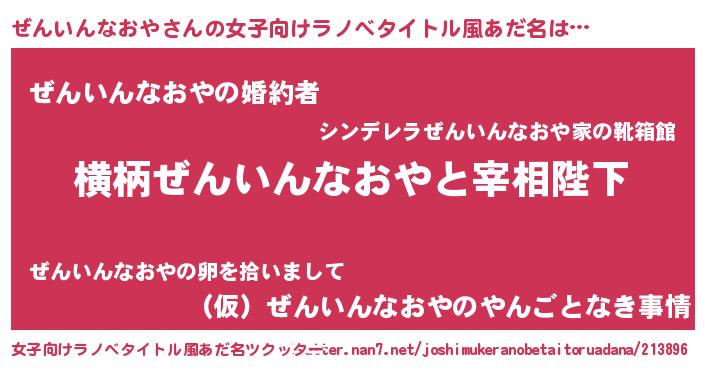 | 男性向けラノベタイトル風あだ名 | 『ぜんいんなおやに滅ぼされるだけの簡単なお仕事です』 |
