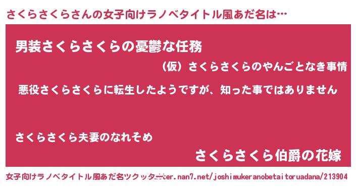 | 意味不明あだ名 | 『住所不定無職さくらさくら(53歳)』 |