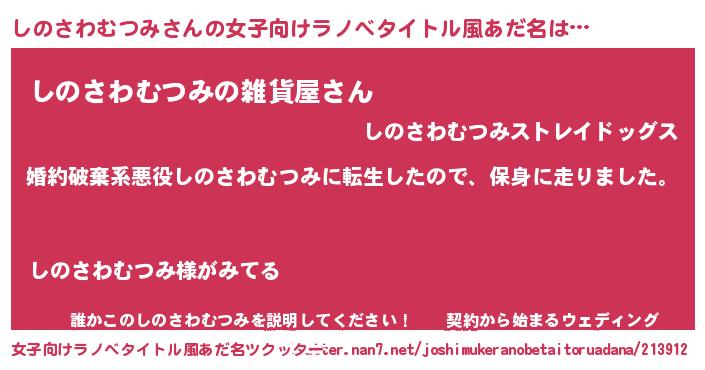 | 料理風あだ名 | 『しのさわむつみごはん』 |
