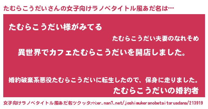 | 男性向けラノベタイトル風あだ名 | 『誰もが恐れるあのたむらこうだいが、ぼくの専属メイドになるようです。』 |