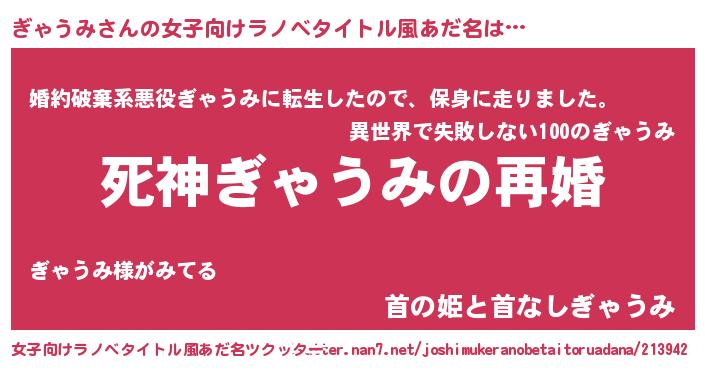 | 男性向けラノベタイトル風あだ名 | 『ノーゲーム・ノーギャウミ』 |