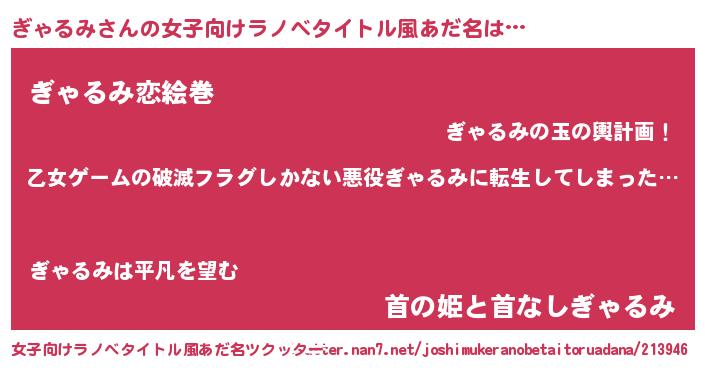 | ヒーロー風カッコイイあだ名 | 『仮面ギャダー』『愛の使者ぎゃるみ』 |