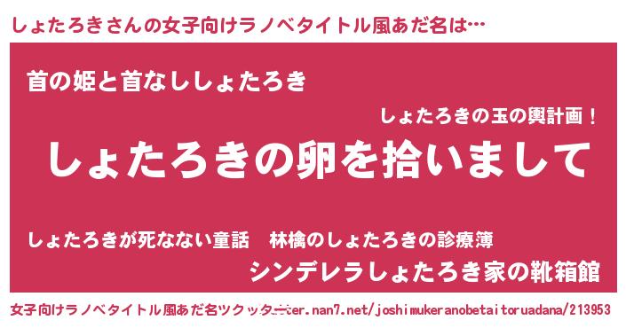 | 胡散臭い通販商品みたいなあだ名 | 『伝統あるサプリメント…その名も「しょたろき」』 |