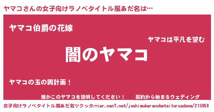 | 男性向けラノベタイトル風あだ名 | 『Re:ヤマコから始める異世界生活』 |