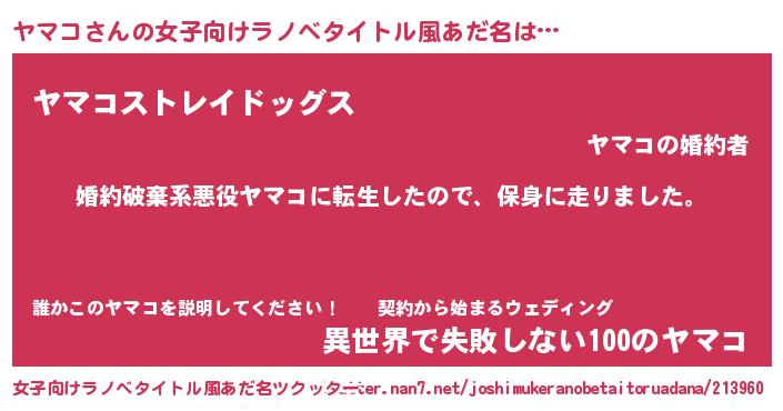 | 男性向けラノベタイトル風あだ名 | 『転生したらヤマコだった件』 |