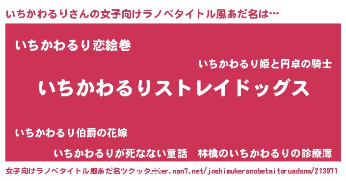 | 男性向けラノベタイトル風あだ名 | 『Re:いちかわるりから始める異世界生活』 |