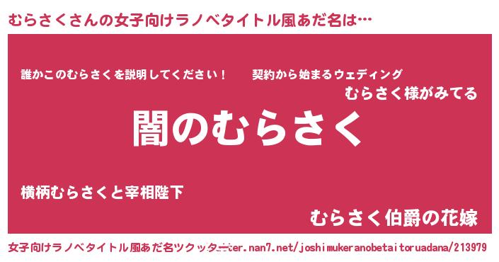 | 男性向けラノベタイトル風あだ名 | 『Re:むらさくから始める異世界生活』 |