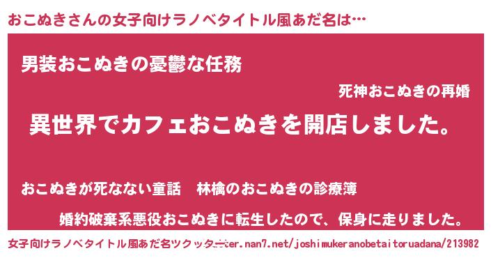 | 男性向けラノベタイトル風あだ名 | 『誰もが恐れるあのおこぬきが、ぼくの専属メイドになるようです。』 |