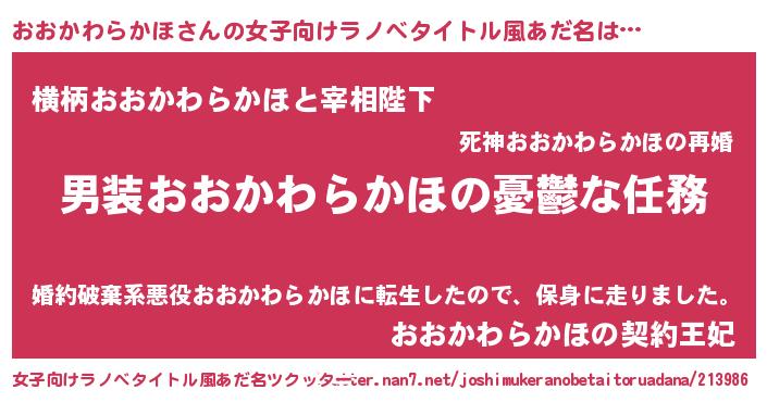 | 胡散臭い通販商品みたいなあだ名 | 『前代未聞の健康食品…その名も「おおかわらかほ」』 |