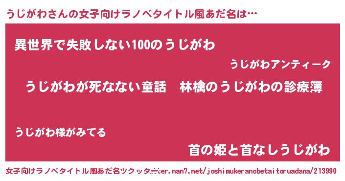 | ヘコむあだ名 | 『うじがわ(爆)』『うじお』 |