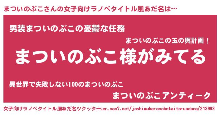 | 男性向けラノベタイトル風あだ名 | 『まついのぶこの嫁は女の子じゃないと思った?』 |