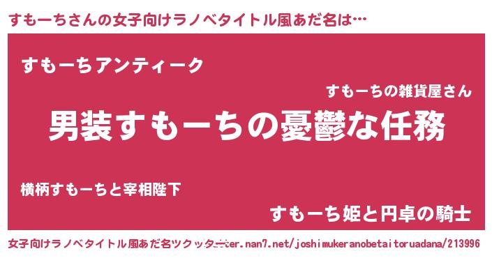 | 男性向けラノベタイトル風あだ名 | 『うちのすもーちが世界を掌握している!』 |