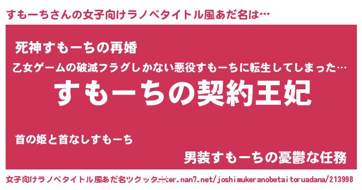 | 胡散臭い通販商品みたいなあだ名 | 『来世でも幸せになれる健康食品…その名も「すもーち」』 |