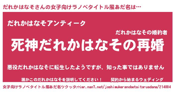 | 男性向けラノベタイトル風あだ名 | 『ノーゲーム・ノーダレカハナソ』 |