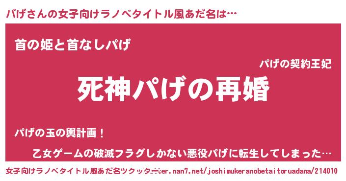 | 男性向けラノベタイトル風あだ名 | 『ノーゲーム・ノーパゲ』 |