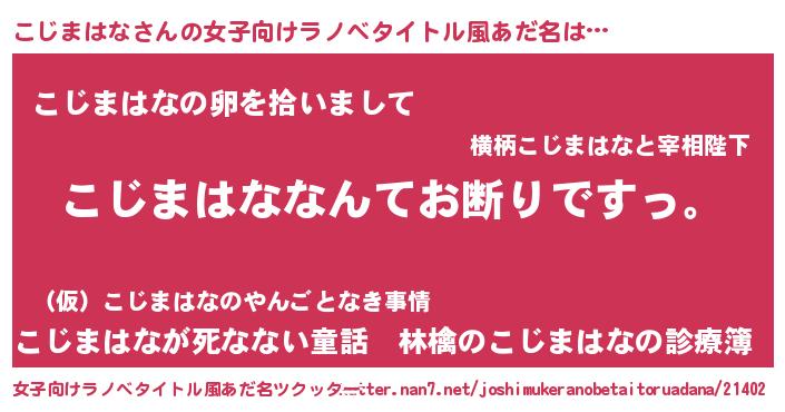 | 胡散臭い通販商品みたいなあだ名 | 『ガンによく効くアガリクス…その名も「こじまはな」』 |
