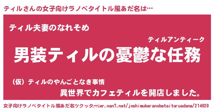| 萌えアニメ | 突然巻き起こる事件『朝起きたら ティルさんの性別が変わっていた』 |