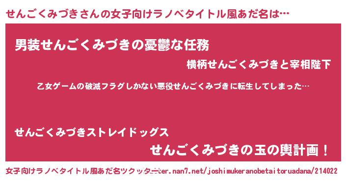 | 男性向けラノベタイトル風あだ名 | 『この素晴らしい世界にせんごくみづきを!』 |