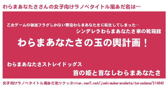 | 恥ずかしいあだ名 | 『ワラマアナタサデラックス』 |