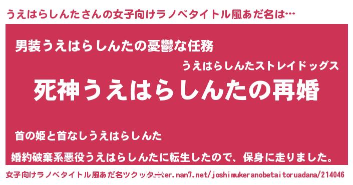 | 男性向けラノベタイトル風あだ名 | 『ノーゲーム・ノーウエハラシンタ』 |