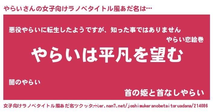 | 胡散臭い通販商品みたいなあだ名 | 『信頼と実績のサプリメント…その名も「やらい」』 |