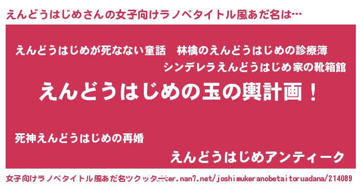 | 男性向けラノベタイトル風あだ名 | 『転生したらえんどうはじめだった件』 |