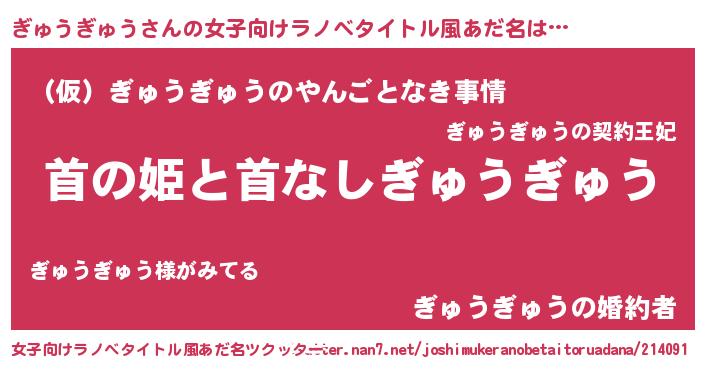 | 男性向けラノベタイトル風あだ名 | 『はたらくぎゅうぎゅうさま!』 |