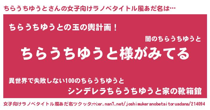 | 男性向けラノベタイトル風あだ名 | 『ちらうちゆうとの嫁は女の子じゃないと思った?』 |