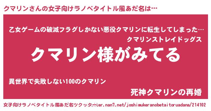 | ヒーロー風カッコイイあだ名 | 『炎刃騎士クマ』『仮面クマダー』 |