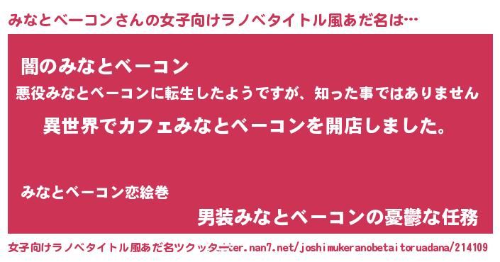 | 男性向けラノベタイトル風あだ名 | 『誰もが恐れるあのみなとベーコンが、ぼくの専属メイドになるようです。』 |