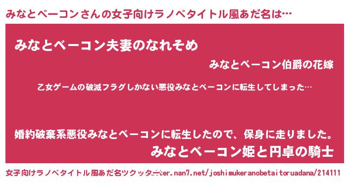 | 意味不明あだ名 | 『住所不定無職みなとベーコン(2歳)』 |