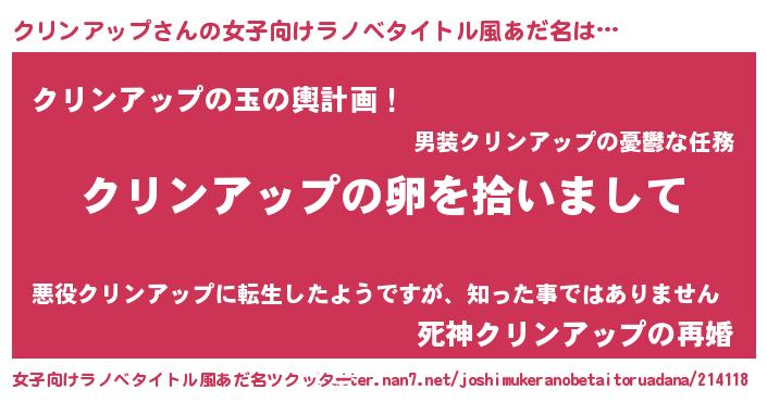 | 男性向けラノベタイトル風あだ名 | 『クリンアップの嫁は女の子じゃないと思った?』 |