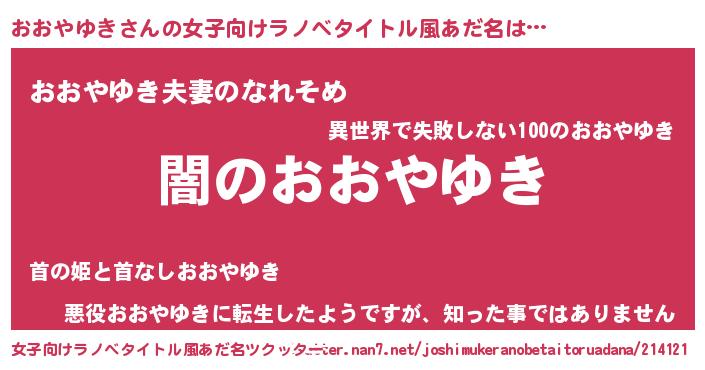 | 胡散臭い通販商品みたいなあだ名 | 『テレビで話題のアガリクス…その名も「おおやゆき」』 |