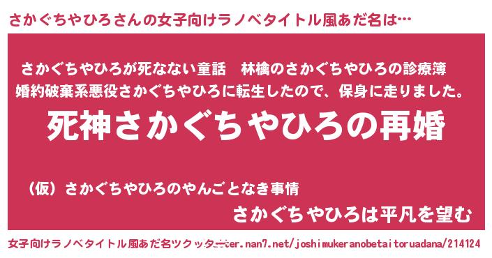 | 男性向けラノベタイトル風あだ名 | 『ノーゲーム・ノーサカグチヤヒロ』 |