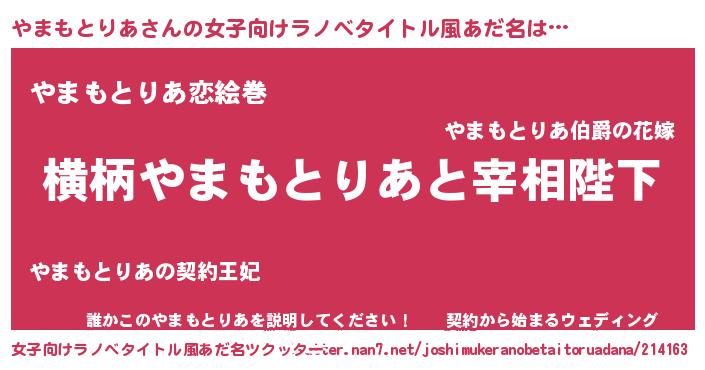 | ヒーロー風カッコイイあだ名 | 『慈愛の使者やまもとりあ』 |