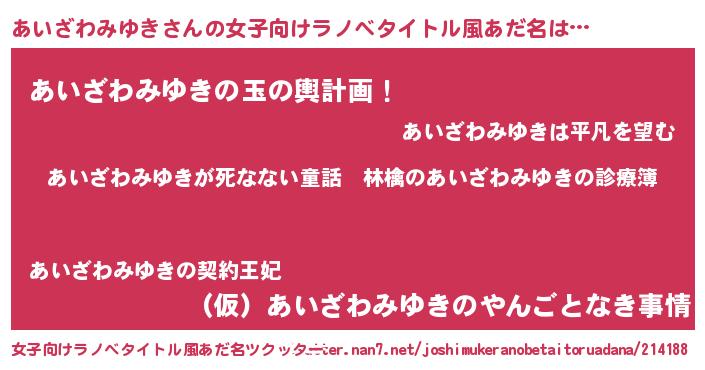 | 料理風あだ名 | 『あいざわみゆきのカルパッチョ風』 |