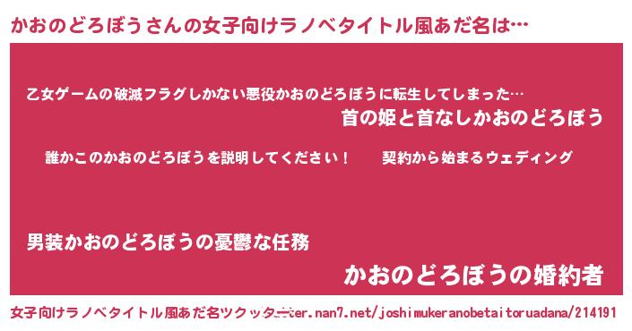 | 男性向けラノベタイトル風あだ名 | 『カオノドロボウアートオンライン』 |