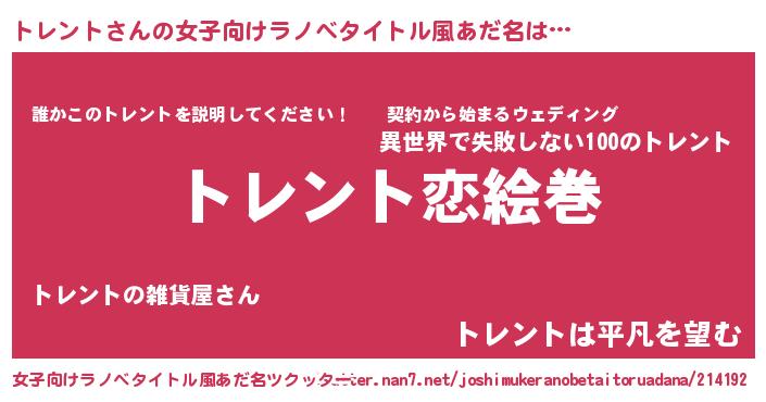 | ヒーロー風カッコイイあだ名 | 『愛の使者トレント』『スーパートレント』 |