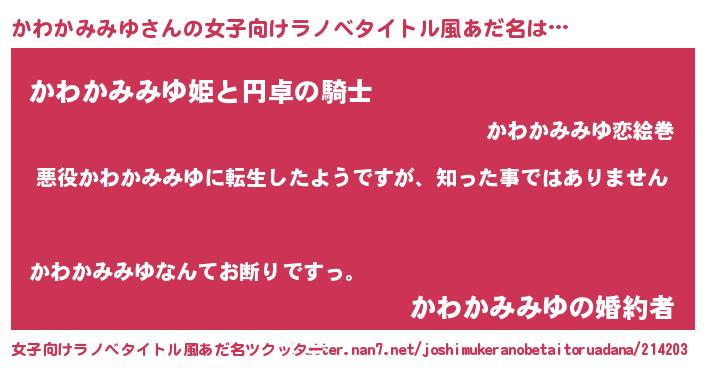| 胡散臭い通販商品みたいなあだ名 | 『あなたにだけ特別に提供する100年もののヴィンテージワイン…その名も「かわかみみゆ」』 |